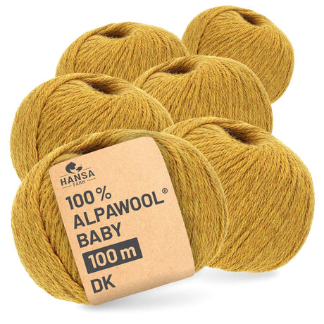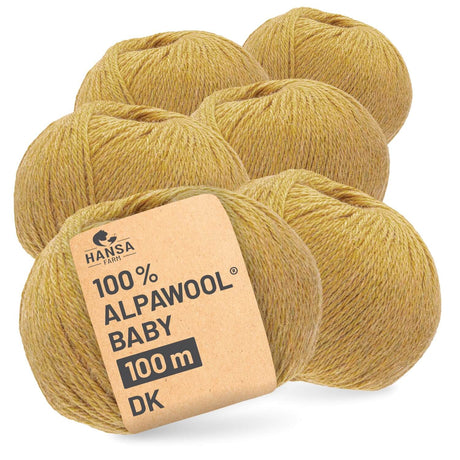- Alpawool® Baby 100 DK HF114 - 6x50g Alpakawolle Senfgelb Melange Auf Lager€43,74Grundpreis€145,80 / kgNicht verfügbar
