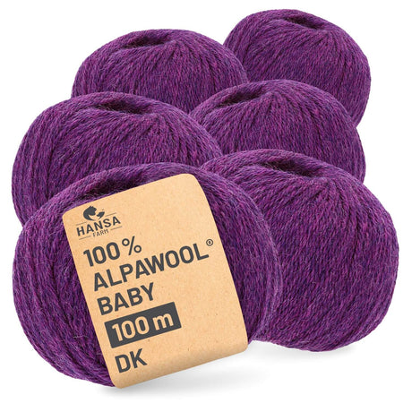 - Alpawool® Baby 100 DK HF216 - 6x50g Alpakawolle Mittel Lila Melange Begrenzter Vorrat€43,74Grundpreis€145,80 / kgNicht verfügbar