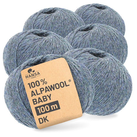 - Alpawool® Baby 100 DK HF234 - 6x50g Alpakawolle Royal-Blau Melange €43,74Grundpreis€145,80 / kgNicht verfügbar