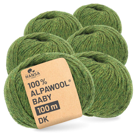 - Alpawool® Baby 100 DK HF285 - 6x50g Alpakawolle Mittelgrün Melange Auf Lager€43,74Grundpreis€145,80 / kgNicht verfügbar