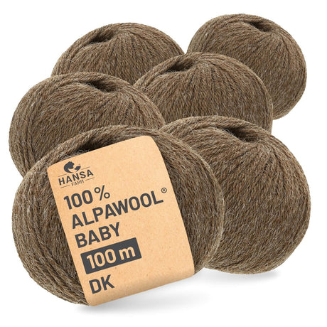 - Alpawool® Baby 100 DK NFA06 - 6x50g Alpakawolle Braun Auf Lager€41,94Grundpreis€139,80 / kgNicht verfügbar