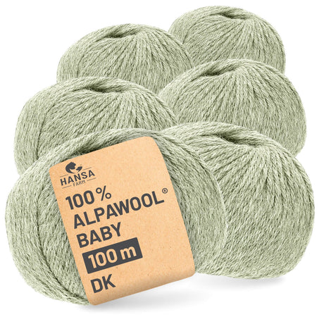 - Alpawool® Baby 100 DK HF300 - 6x50g Alpakawolle Minze Grün Melange Auf Lager€43,74Grundpreis€145,80 / kgNicht verfügbar