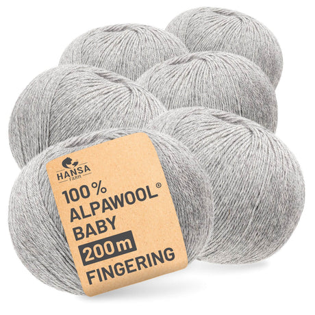 In stock€41,94Unit price€139,80 / kgUnavailableAlpawool® Baby 200 Fingering NFA10 - 6x50g Alpaca Wool Light Grey