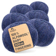 HIGH-QUALITY BABY ALPACA WOOL: With a running length of 200m/50g, 4-ply, made of 100% alpaca wool (baby) in a value pack of 6 x 50g balls.