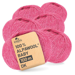 Alpawool® Baby 100 DK HF191 - 6x50g laine d'alpaga mélange crème framboise