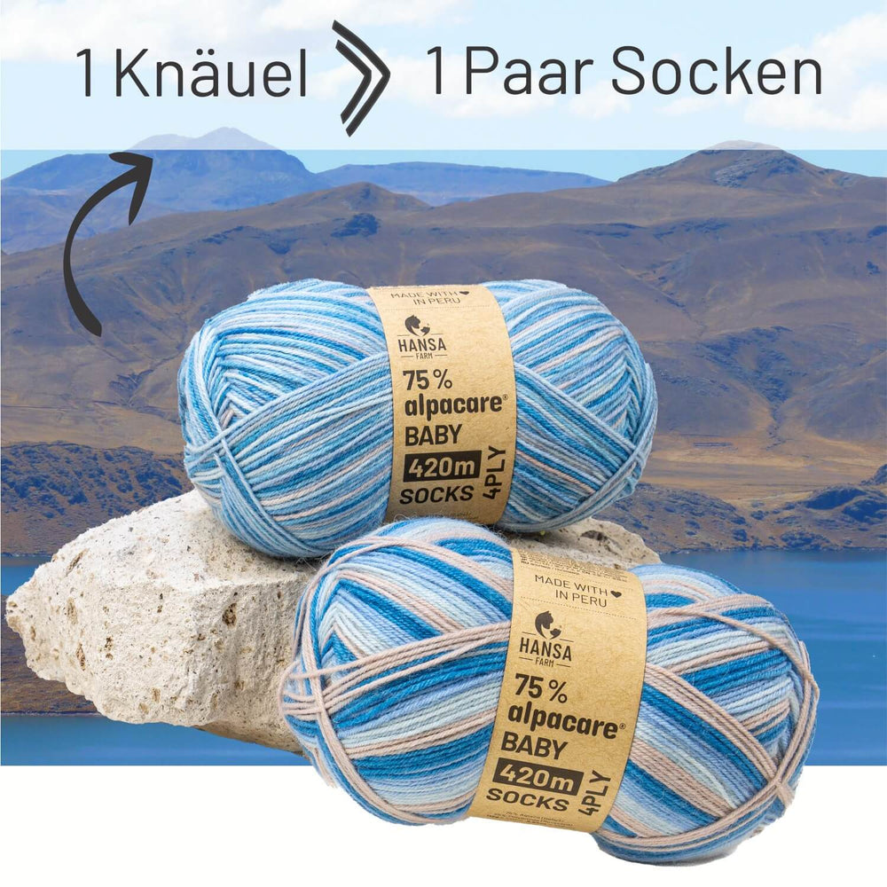 alpacare® Baby Socks waschbar Story Set - 2x112g Alpakawolle Blue Breeze ist auf Lager und wird versandt, sobald es wieder verfügbar ist