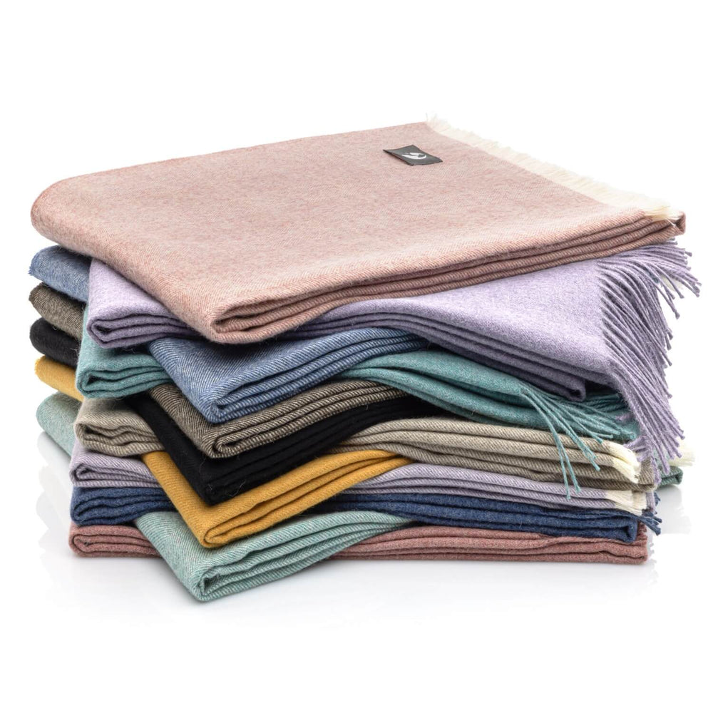 Unsere Plaids sind mit ca. 500g ein Leichtgewicht, dabei jedoch genau so warm wie eine deutlich dickere Wolldecke.
